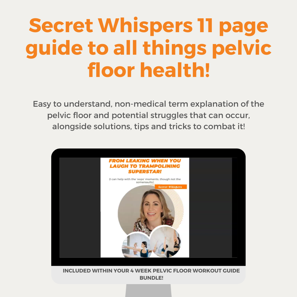 - Secret Whispers 4 week pelvic floor workout guide. Please save it to your phone, laptop, or iPad so that you can access it from anywhere. The video links are safely secured on Vimeo. Each week we will unlock the videos.